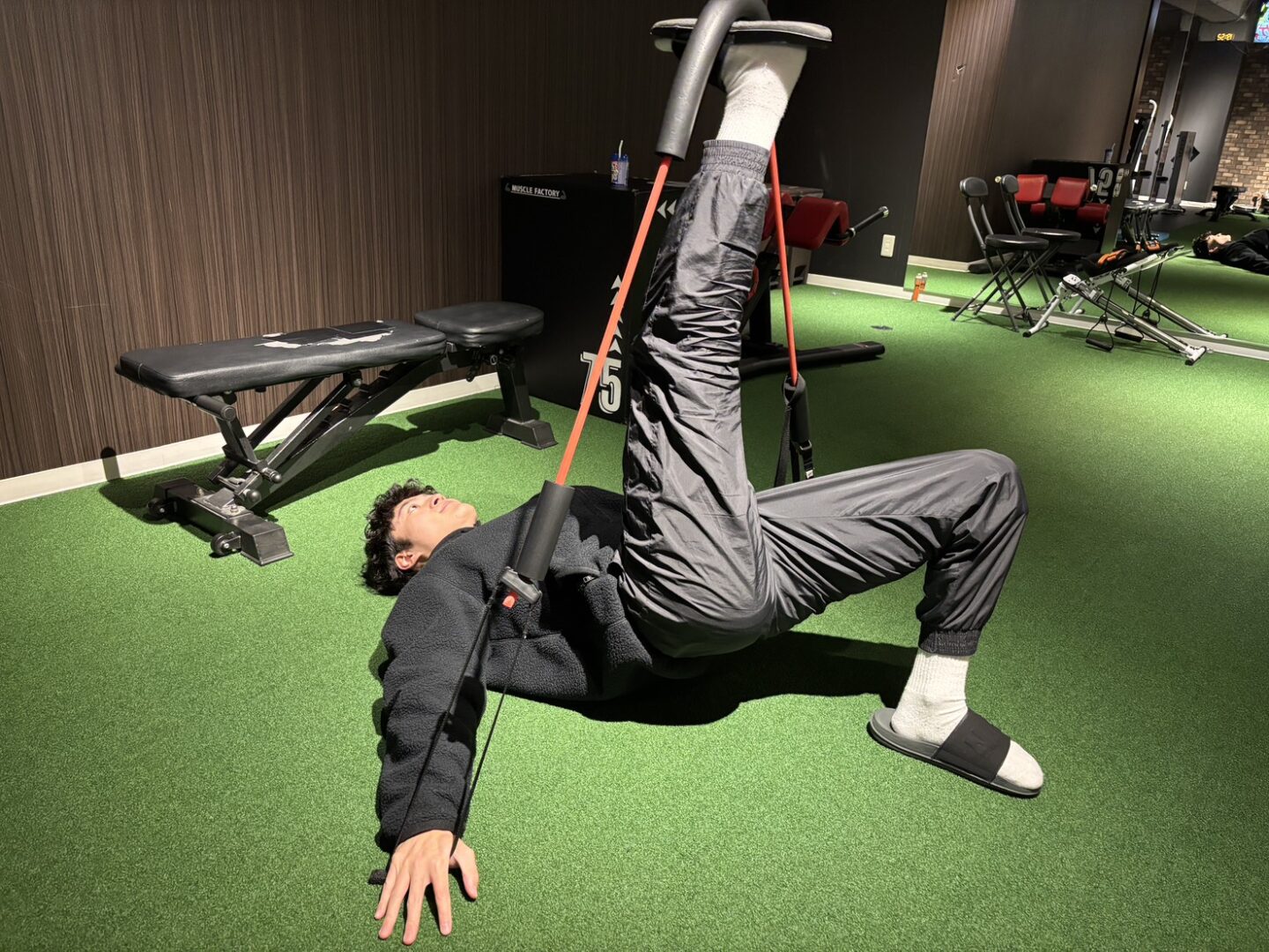 ジムに来られる多くの方がもも前がカチカチなので、まずはこのような種目からぜひやってみてください。
